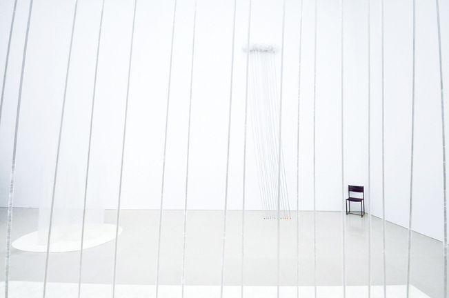 ぼよよんとゆれる小屋やそよぐ雲や雨の立体などの構築物を製作し、美術館の空間をも含めて、絵画と呼応しあう空間 をつくっている。また、展示室内にはstudio velocityによる作品も展示された。